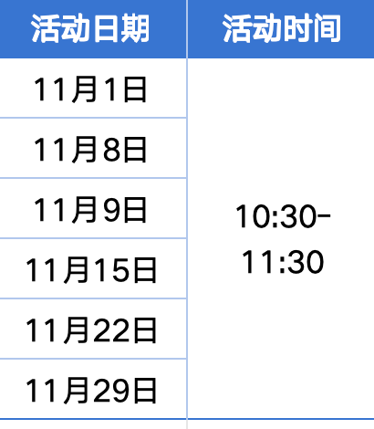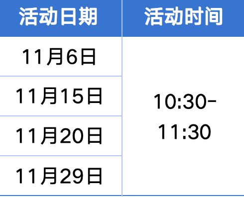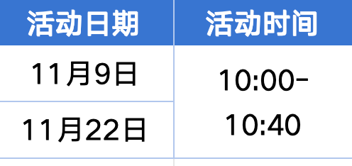 11月8日、11月23日(具体时间详见当日服务台公示)