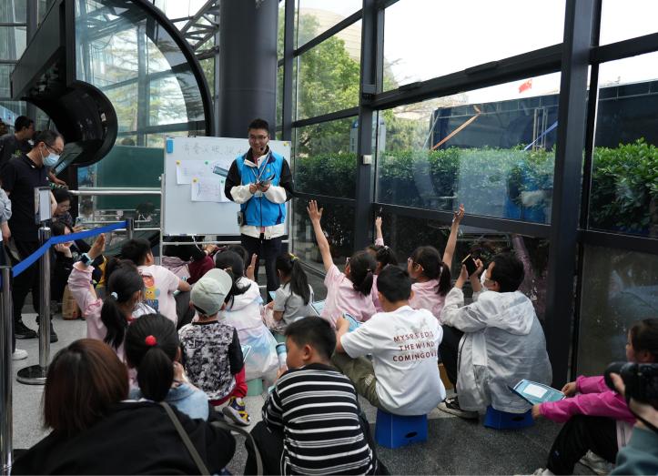 “星河茶话会”由北京天文馆与北京师范大学物理与天文学院研究生志愿者联合策划,通过生动图解、互动任务卡和趣味讲解,带领观众在展厅里边玩边学,探秘宇宙的奇妙之处。