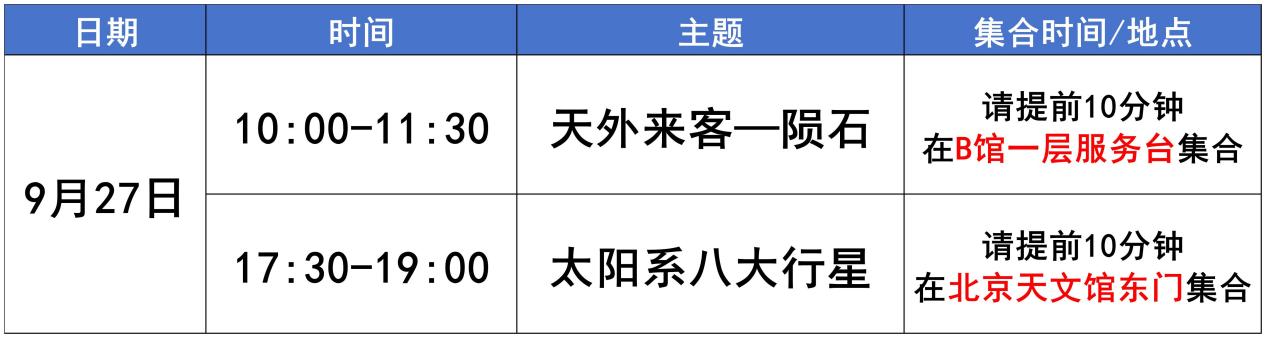 2.北京天文馆可能采集并使用参与活动者的肖像(包括但不限于照片、视频),用于北京天文馆对教育服务的存档和宣传。报名参与相关活动者视作同意北京天文馆以上行为。